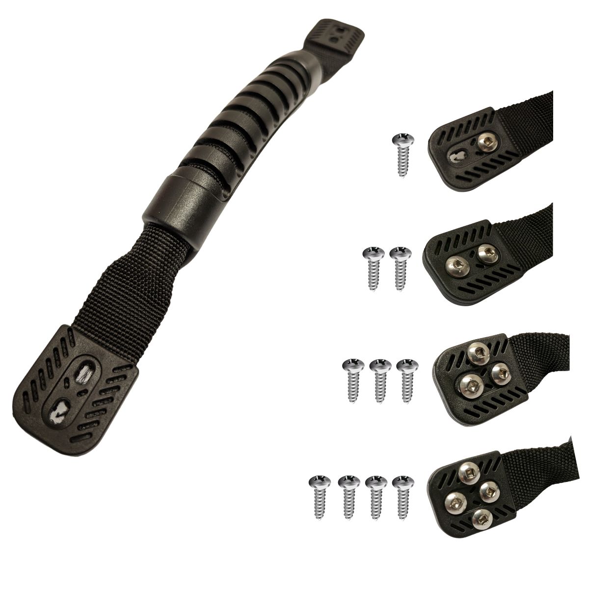 - 🔩 The handle itself remains the same two-hole design across all models. Extra side screws secure the handle to the hull, but the tab is always two-hole.